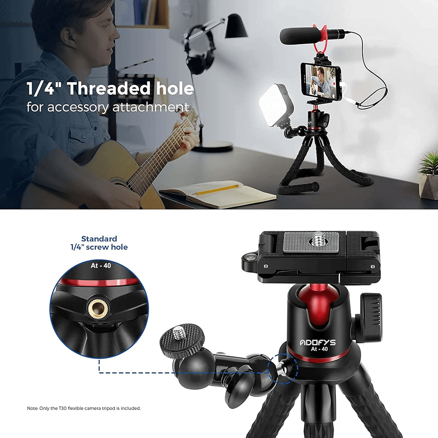4. ADOFYS AT-40 Flexible Gorillapod Tripod Cell Phone Tripod Gorilla Tripod Lightweight Bendable Tripod with Heavy Duty Smartphone Stand, Compatible with Action Camera and Smartphone etc.